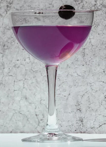 Gin, maraschino liqueur, violet liqueur, and lemon juice garnished with a candied cherry. Strong on the outside, but sweet and floral on the inside, just like he used to be.